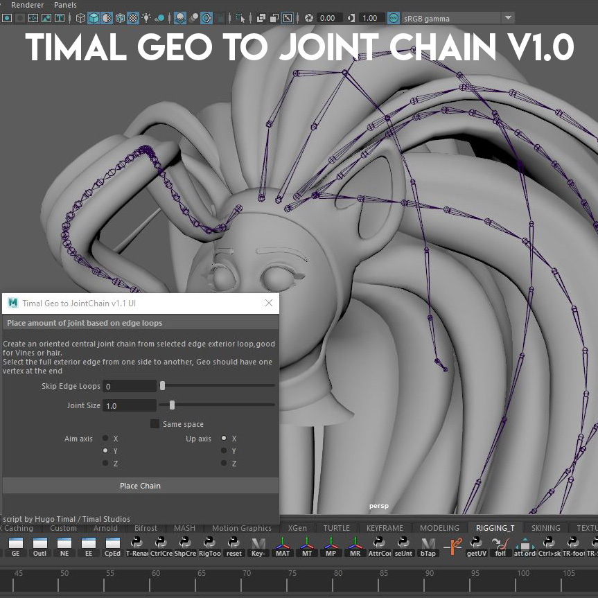 A great tool to easily create joint chains for hair, vines, plants, tubes, etc.